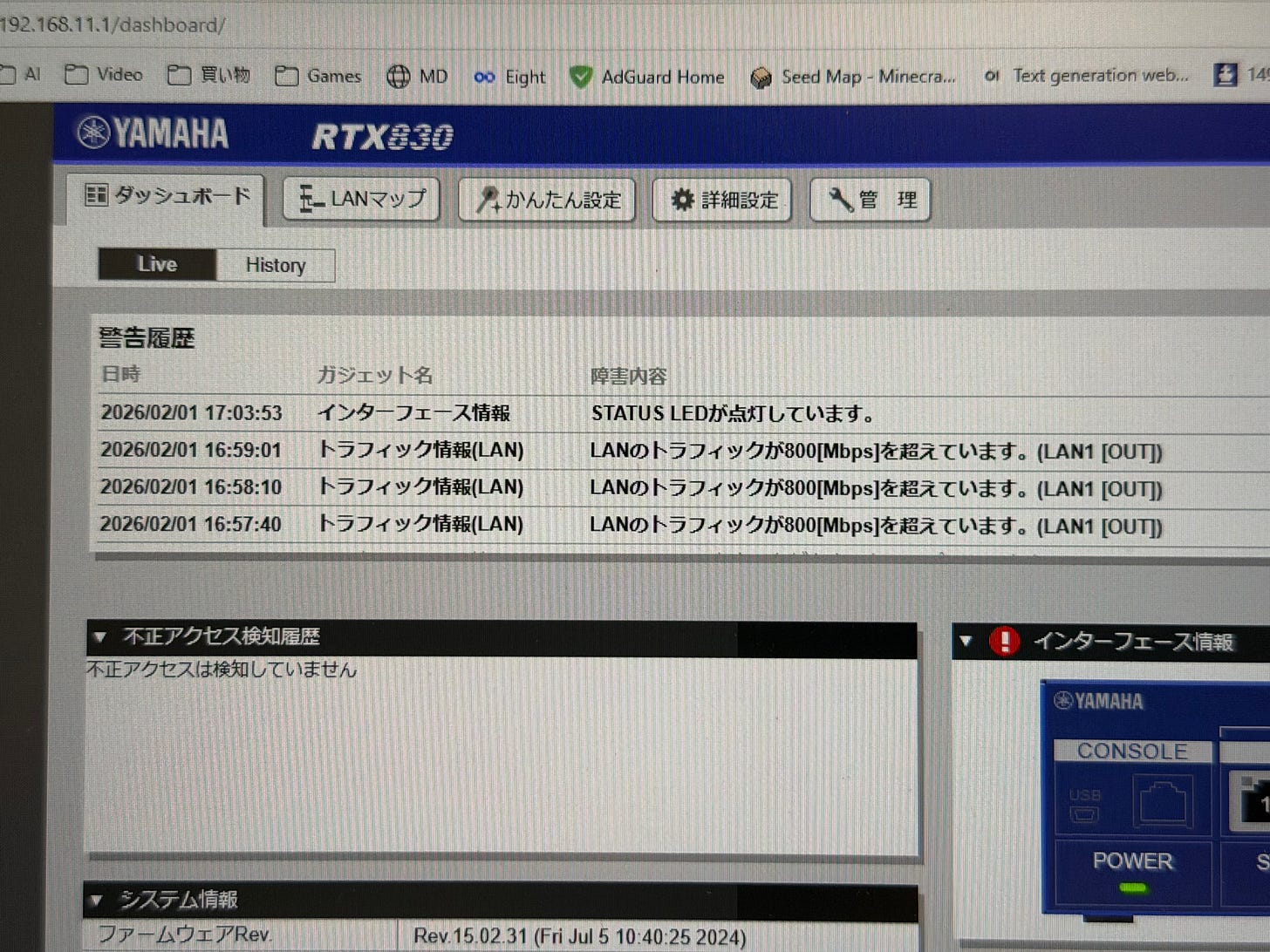 そんな矢先に困ったことが起こりました。前回の配信にも書いた、特定の通信を行うとYAMAHAルーターがオーバーフローを起こしてしまい、しまいにはインターネットに数時間の間繋がらなくなってしまうという大問題です。
