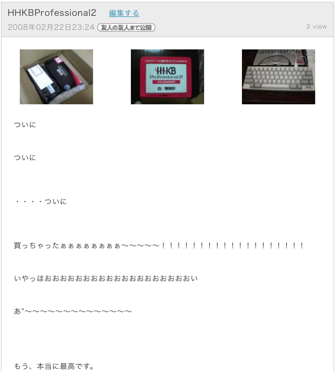 e-messeのプレゼンでもこの画像を紹介しました。僕がこのHHKB Pro2を購入したのは2008年2月でした。