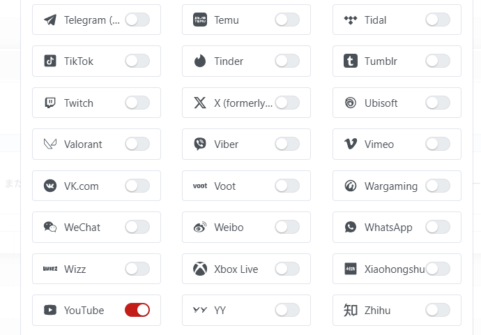 こちらはフィルタリングの設定画面の一部分ですが、有名なサービスであればこうしてピンポイントでブロックすることができるようになっていました。対応しているサービスがあまりにも多かったので、Youtubeあたりが写るようにスクショを撮りました。ドメイン名などを入力しなくとも、有名なサイトやサービスが登録されているのも設定がしやすくて助かりました。